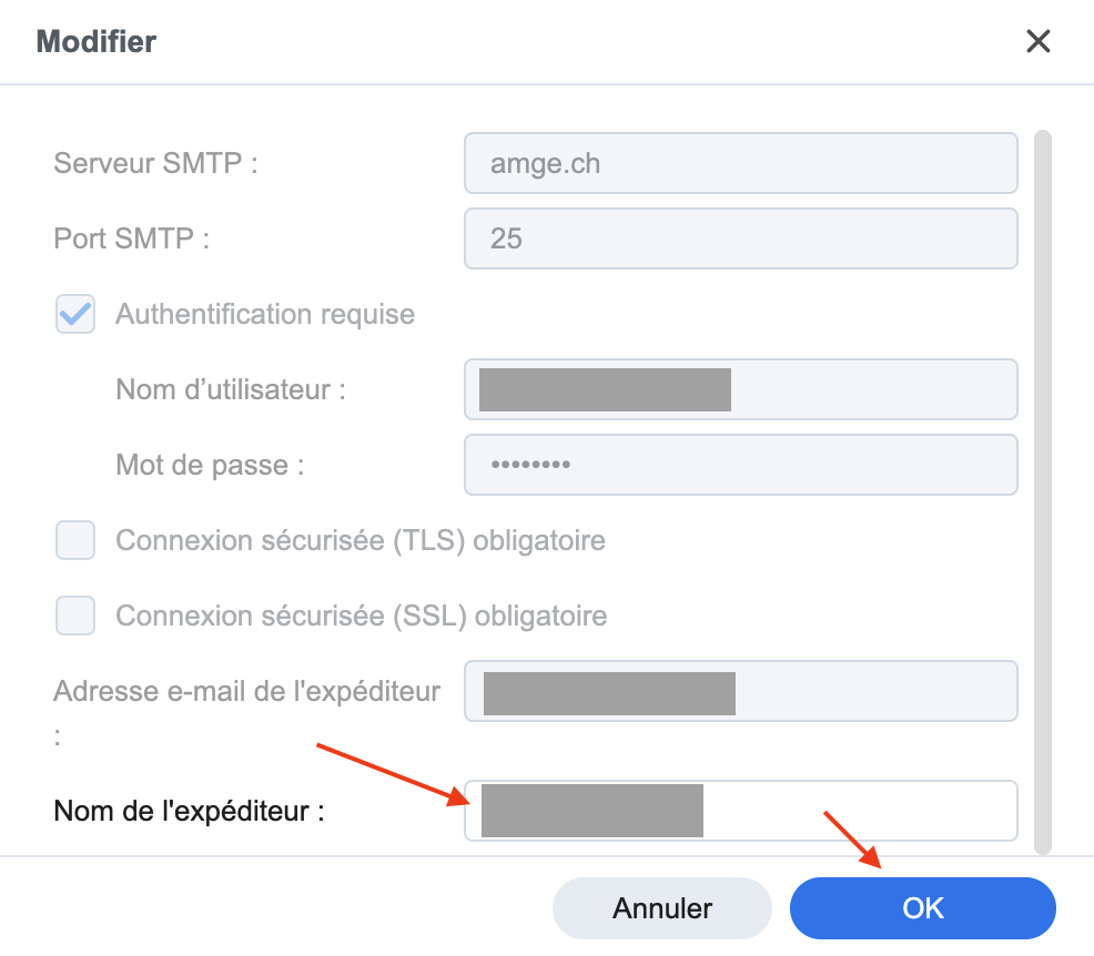 Tout en bas, changer le “Nom de l’expediteur” par ce que vous voulez: