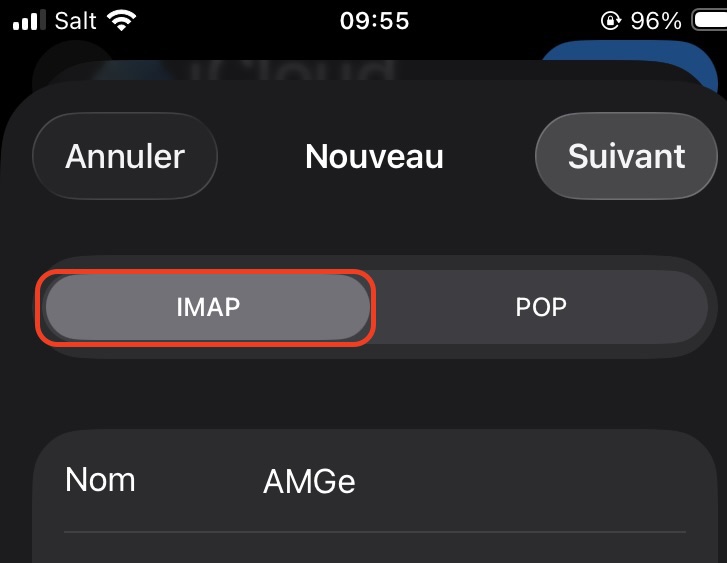 Veillez à rester dans l’onglet “IMAP” et non “POP” pour réaliser les prochaines étapes :