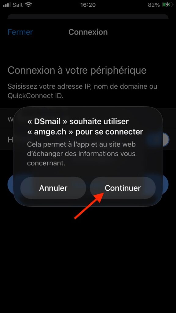Pour continuer l’authentification sur le webmail de l’AMGe, il vous suffit de cliquer sur le bouton “Continuer”.