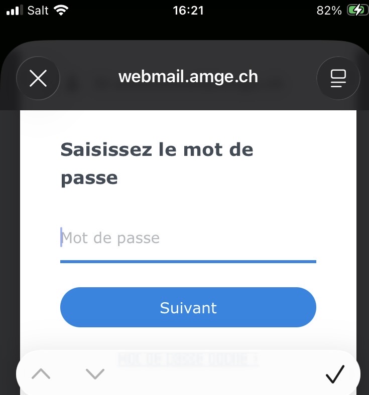 Indiquez le mot de passe de votre adresse AMGe et cliquez sur le bouton “Suivant”.